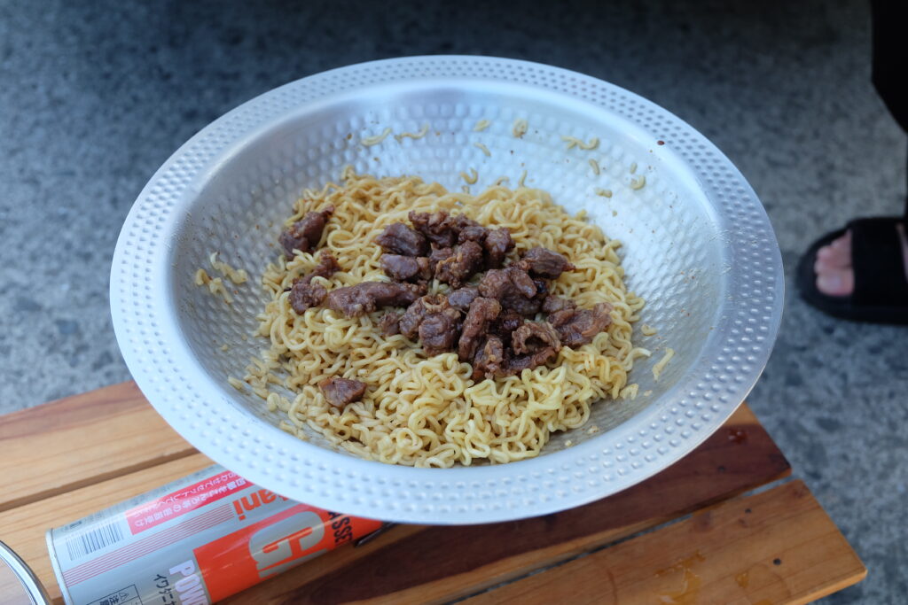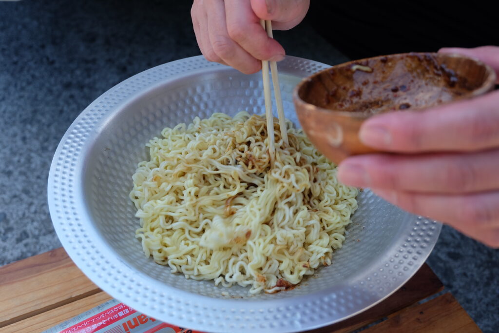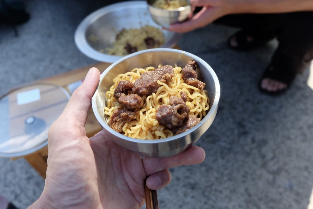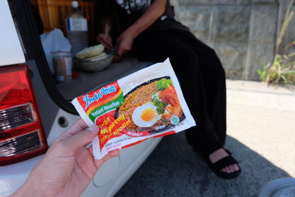 ここで、でんでんさんが即席ミーゴレンをご馳走してくれるとのこと。