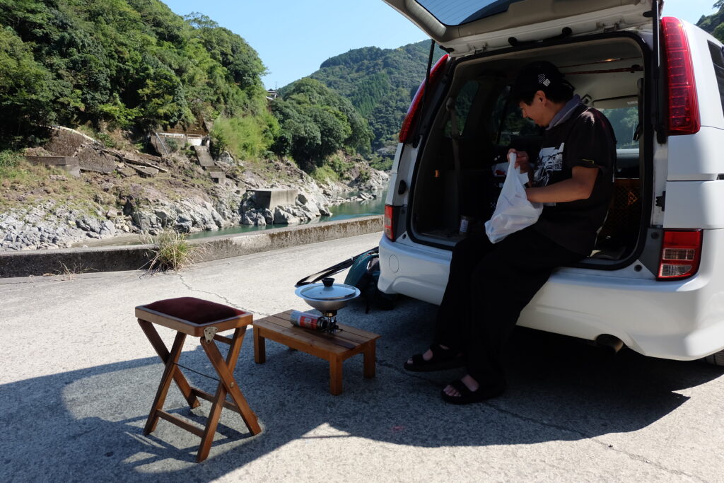 今回、私もそうだし、でんでんさんも旅の途中で、ちょっとした調理器具くらいは車に乗っているのである。