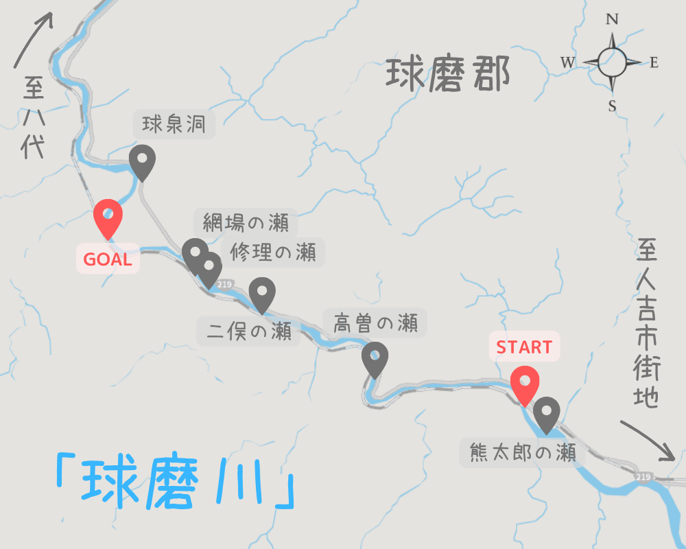 渡〜球泉洞までの主な瀬にピンを打っていますので。