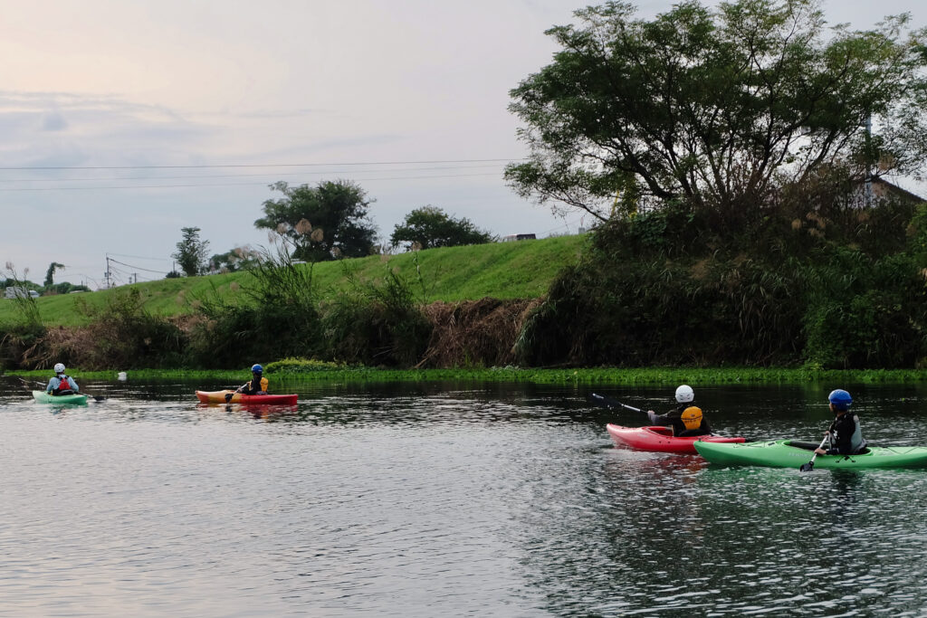 約2時間半ほど漕いで、下江津湖の出口〜木山川と合流したあたり。