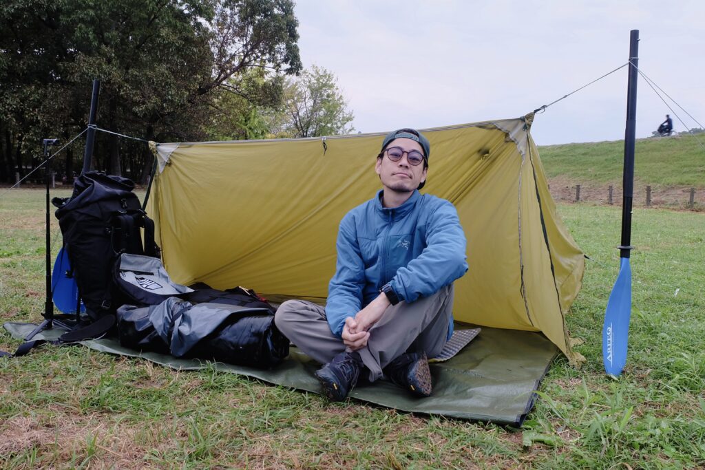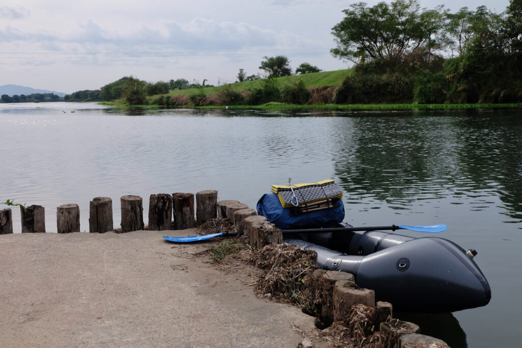 これは下手したら日帰りでも遊べちゃう距離感なんだけど、今回はせっかくなんで、キャンプ道具一式も持ち込んで、パックラフト&キャンプです。
