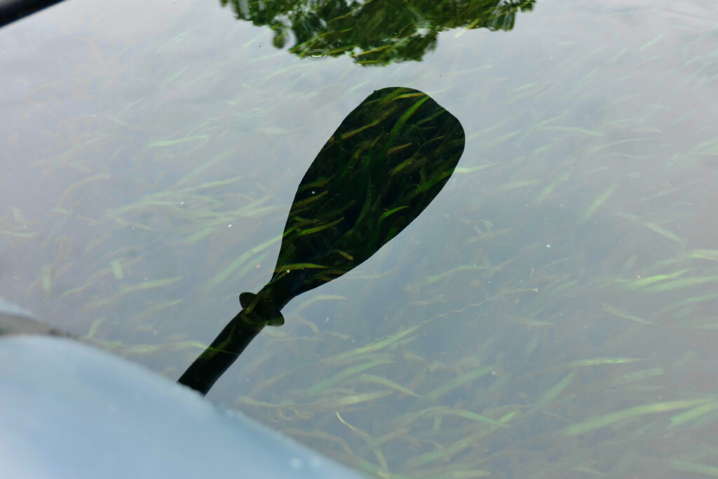川岸は水草がたくさん育っていて、出艇ポイントがなかなか見つからず。