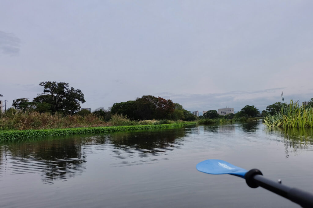 今回は、上江津湖のちょっと上流のあたりから出艇し、のんびり下江津湖方面へ漕いでみた。